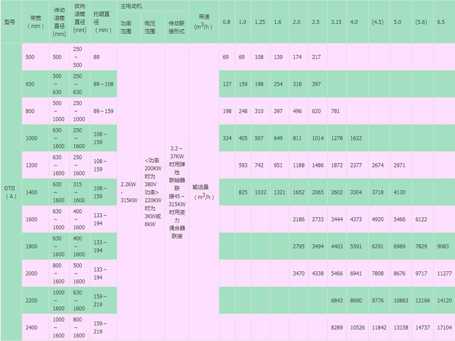 本产品是DT II型系列产品的改进产品,可用于煤炭、矿山、港口、电站、建材、冶金等行业,可输送松散密度为0.5—2.5t/m3的各种散状物或物品,工作环境温度-250C—400C,适用于倾斜及水平输送,也可以采用带凸、凹弧段与直线段组合输送形式。